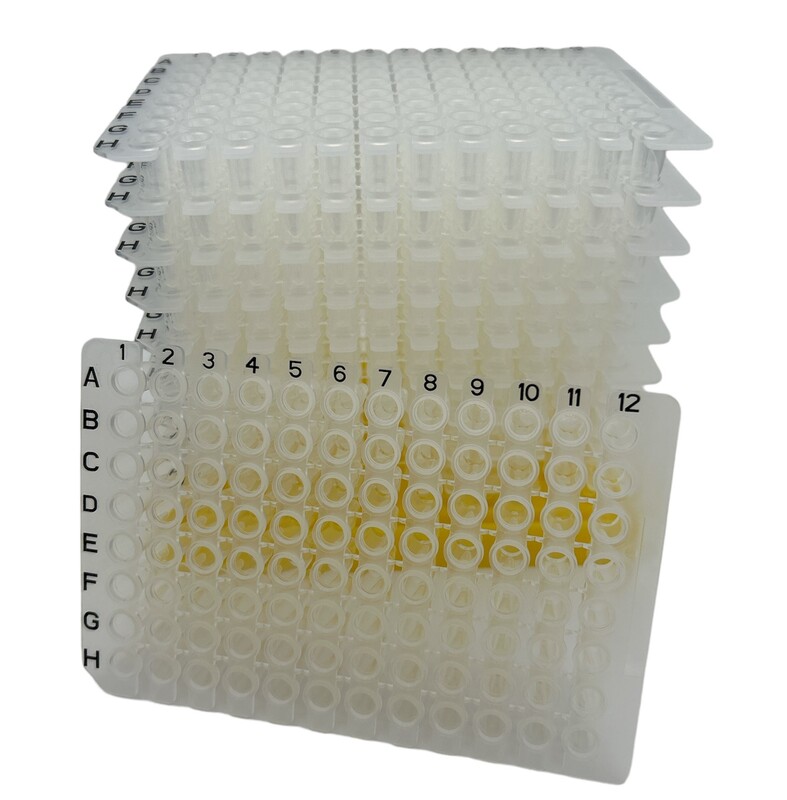 PCR-96-0.2-NS-50 Breakaway PCR plate, 0.2 ml, non-skirted, Low profile, clear wells, clear frame - 50 Plates/Case. Compatible with BioRad, QuantStudio 3/5/7/12K 0.2 ml 96-well block Room temperature shipping